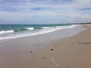The beaches are extremely clean and not really crowded. But you need to watch the report for low and high tide. With the high tide you're walking in very loose sand and it's very tiring. It reminds me of years ago when Melissa and I played sand volleyball. Only once, never again. But Sunday we walked at low tide. The sand on the beach is very compressed and the walk didn't seem near as long. Although my legs are starting to "feel the burn".